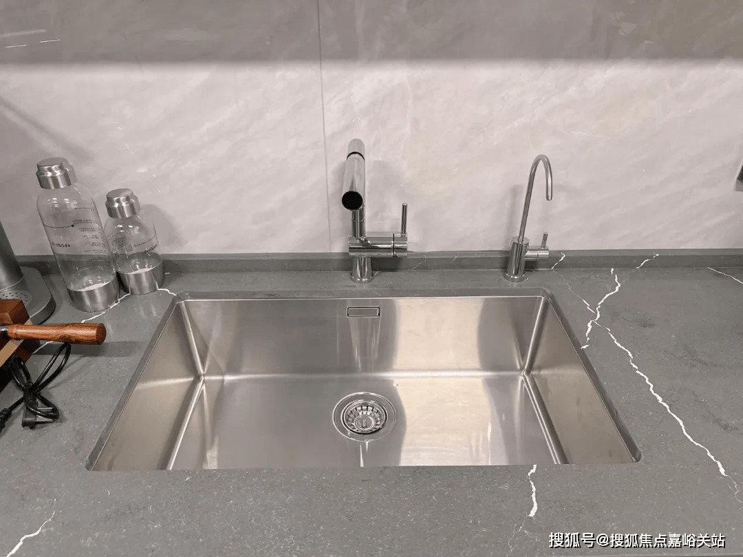 水槽采用的是铂浪高不锈钢大单盆:共同抽拉式水龙头,
